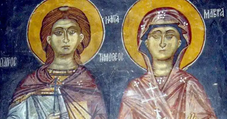 Тимотеј и Мавра се млади сопружници, чии животи беа запечатени со крстна смрт заради нивната непоколеблива вера во Христа. Само дваесет дена по нивната венчавка, беа изведени пред судот на намесникот Аријан, за време на големите прогони на христијаните под императорот Диоклецијан, во 286 година.