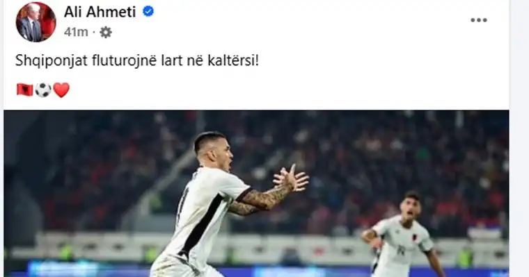 Лидерот на Демократската унија за интеграција (ДУИ), Али Ахмети, со ентузијазам реагираше на социјалните мрежи по победата на Албанија над Србија. Со својата порака, тој ја истакна националната гордост преку симболиката на орелот – еден од најпознатите албански симболи.