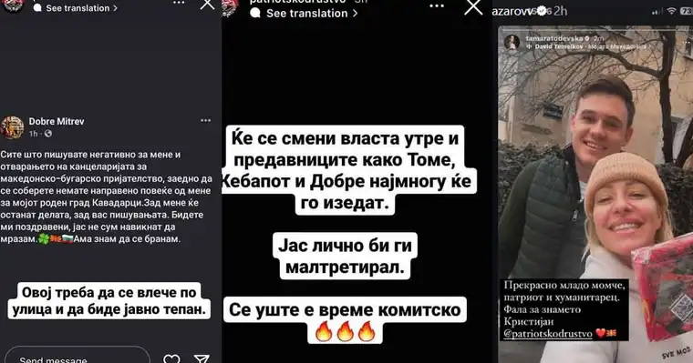 Интересно е што, според обвинувањата на Лазаров, профилот „Патриотско Друштво“ не само што шири омраза, туку и прикриено повикува на физичко насилство. Во една од објавите, наводно стоело дека личноста зад профилот „лично би ги малтретирал“ оние кои се изјаснуваат како Бугари во Македонија. Дали таквите изјави се казниви според македонското законодавство?