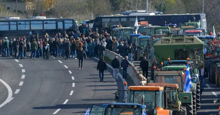 Според грчката новинска агенција АНА-МПА, на оваа локација се собрани повеќе од 150 трактори и земјоделски возила. Протестот, инициран од земјоделците од областа Пеонија, постојано се зајакнува, а бројот на учесници и механизација расте.
