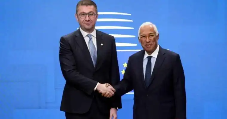 Претседателот на Европскиот совет, Антонио Кошта, денеска од Скопје испрати јасна и недвосмислена порака до македонските власти: нема напредок во евроинтеграциите без исполнување на веќе преземените обврски, меѓу кои е и уставното внесување на Бугарите. На заедничката прес-конференција со премиерот Христијан Мицкоски, Кошта потврди дека оваа точка претставува црвена линија за Европската Унија.