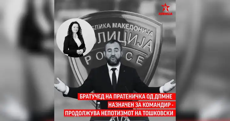 Партијата Левица ја обвини владата на Мицкоски за продолжување на непотизмот во Министерството за внатрешни работи, потврдувајќи дека не се преземаат конкретни чекори за решавање на проблемите со корупцијата и партиската партизација на институциите. Според Левица, најновиот случај на непотизам вклучува именување на Жарко Златески, деверот на пратеничката од ВМРО-ДПМНЕ, Бисера Златеска, за командир на Полицијата во Македонски Брод.