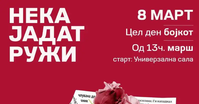 На 8 Март повикуваме на бојкот на големите маркети, ланци и трговските центри кои преку вештачки наметната инфлација нѐ доведуваат до раб на егзистенција. А за да ја истакнеме вредноста на сè што секојдневно правиме во домот, овој 8 март ги повикуваме жените на бојкот на домашните обврски.
