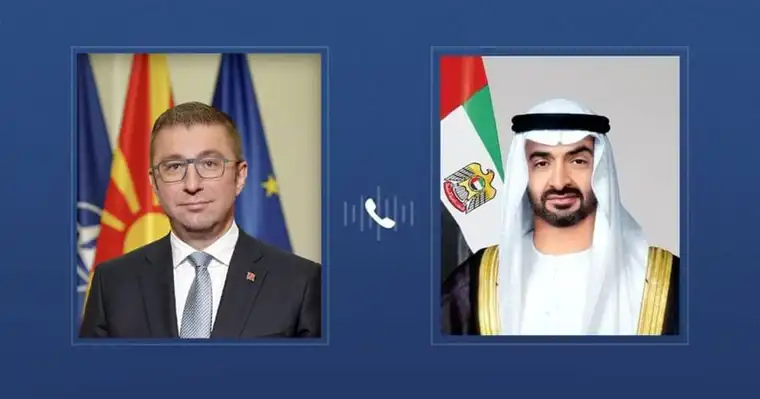 Претседателот на ОАЕ, шеикот Мохамед бин Зајед Ал Нахјан, денеска примил телефонски повик од премиерот на Северна Македонија, Христијан Мицкоски, јавува Емиратската новинска агенција.