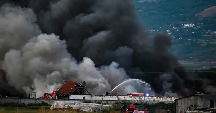 Пожарот започна вчера околу 13:30 часот во штала наменета за складирање отпадни електрични материјали и за кратко време предизвика густ црн чад што се прошири и кон неколку соседни објекти.