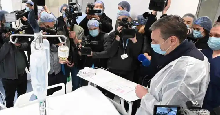 Вучиќ донесе над 20 репортери, фоторепортери и сниматели во една од собите со тешко повредени млади луѓе.