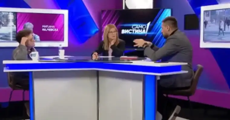 Професорката Мирјана Најчевска која вечерва гостуваше на дебата на Канал 5 телевизија со Петар Богојевски.