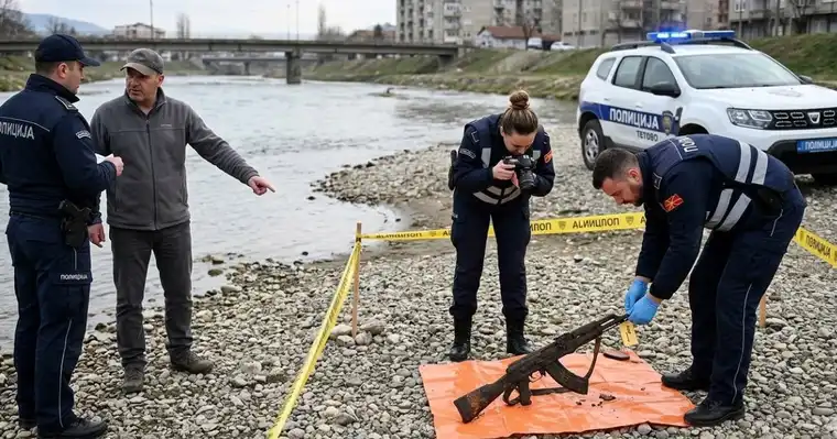 На 14 март 2026 година, околу 09:10 часот, во Одделението за внатрешни работи во Гостивар било пријавено дека во водите на реката Вардар е пронајдена автоматска пушка.