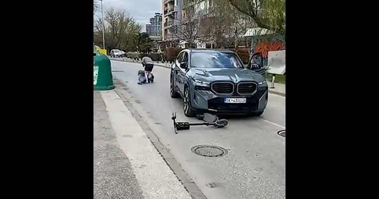 Во јавноста се појави вознемирувачка снимка од сериозен инцидент што се случил пред три дена во скопската општина Аеродром, каде возач на џип „БМВ“ намерно удрил во човек кој управувал електричен тротинет, а потоа излегол од возилото и физички го нападнал.