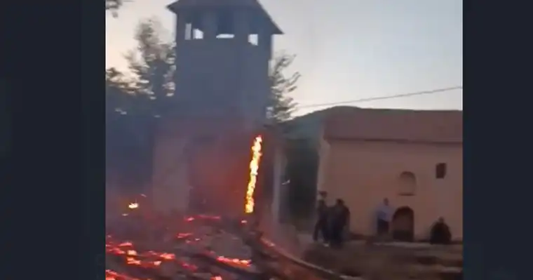 Пожар избувна во близина на селото Рамне, општина Македонски Брод, зафаќајќи дел од гробиштата и црквата во селото.