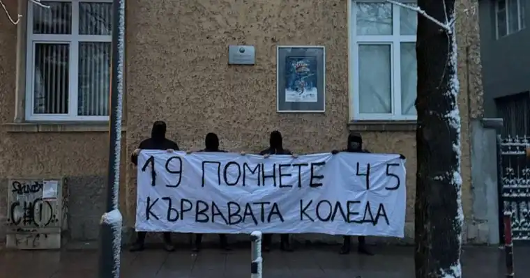 Пред зградата на Културно-информативен центар на Северна Македонија во Софија денес се одржа политички уметнички перформанс во организација на бугарското движење Куберов воин.