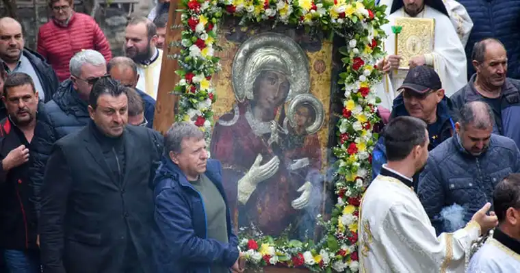 „Од дамнина, и кај нас се изнесува иконата од манастирот, се одржува литиска поворка и водосвет, во духот на светогорската традиција“, вели митрополит Серафим. Празничната литургија започна денеска во 7:30 часот.