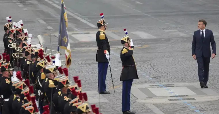 Францускиот претседател Емануел Макрон во понеделникот предводеше церемонија кај Триумфалната капија по повод националниот празник Денот на Бастилјата, кој традиционално се одбележува со голема воена парада и настани ширум земјата.