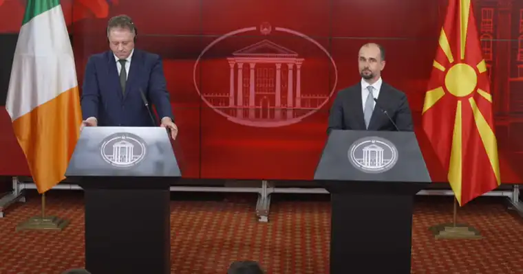 Министерот за европски прашања и одбрана на Ирска, Томас Бирн, упати силна порака на поддршка до Македонија во процесот на пристапување кон Европската Унија. Тој истакна дека иако патот на земјава е мачен и полн со предизвици, Ирска и другите земји членки ќе продолжат активно да работат на олеснување на процесот.