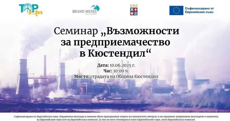 Во време кога светот бара решенија за одржлив развој и економска транзиција, градот Ќустендил ја покажува својата подготвеност да биде лидер меѓу регионите кои го гледаат претприемништвото како клуч за иднината. На 10 јуни 2025 година, токму тука, во срцето на Западна Бугарија, ќе се одржи семинарот „Можности за претприемништво во Ќустендил“ – инспиративен настан кој ветува нова енергија, идеи и шанси за локалниот и национален развој.
