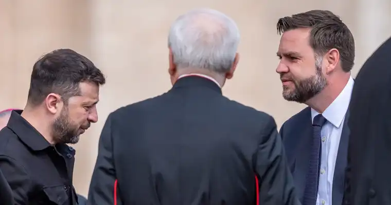 Американскиот потпретседател Џеј Ди Ванс и украинскиот претседател Володимир Зеленски се ракуваа на церемонијата – сцена што беше во силен контраст со нивниот јавен судир во февруари во Белата куќа.