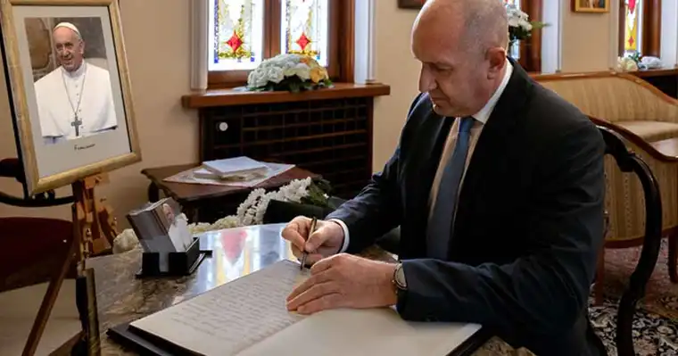 Претседателот на Бугарија, Румен Радев, со длабоко емотивна порака се потсети на Апостолската посета на папата Франциск во Бугарија во мај 2019 година, опишувајќи го тој момент како трајно светло сеќавање за бугарскиот народ. „Бугарскиот народ секогаш ќе го носи во срцето топлиот спомен од Апостолската посета на папа Франциск, кога тој испрати порака за 'Мир на земјата' директно од Бугарија,“ напиша Радев во книгата за сочувство изложена во Апостолската нунцијатура во Софија.