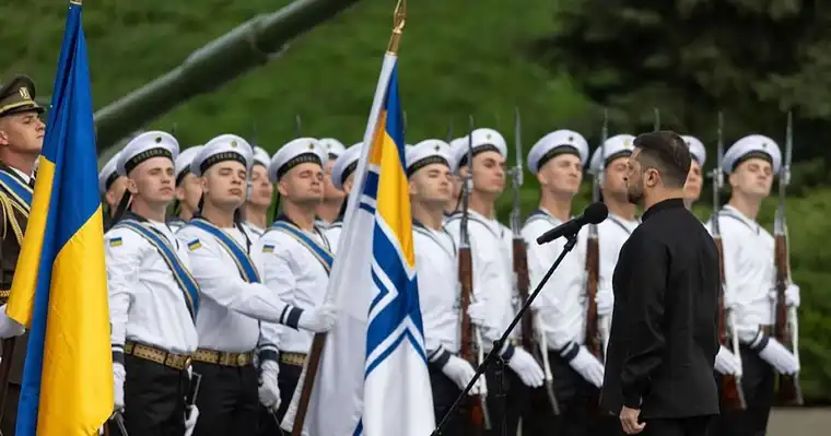 „Ова знаме симболизира сè што е најдрагоцено за стотици илјади наши војници – мажи и жени од сите делови на Украина – кои ја бранат не само една линија на фронтот, туку целата држава,“ изјави Зеленски. Тој додаде дека знамето е цел и сон за многу Украинци во привремено окупираните територии, кои веруваат дека нивната земја нема да им биде предадена на окупаторите.