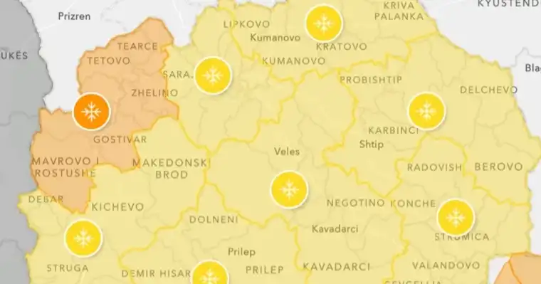 С. Македонија денес (21.01.2026) се наоѓа во портокалова фаза поради најавениот нов бран на пообилни снежни врнежи што ќе ја зафатат земјава. Управа за хидрометеоролошки работи (УХМР) издаде итно предупредување, апелирајќи на зголемена внимателност кај граѓаните.